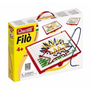 Con Filò è facile e divertente tracciare magici disegni con i lacci colorati e poi disfarli in un baleno per ricominciare a disegnarne sempre di nuovi. Basta caricare la penna speciale con i lacci, premere nelle apposite fessure autobloccanti della tavoletta e subito tracci una linea lunga quanto vuoi. Le istruzioni e le schede, poi, mostrano tanti esempi da copiare di diversa difficoltà con cui allenare la propria fantasia prima di inventarne, da soli, di nuovi. È un gioco di grande valore educativo che sviluppa le capacità artistiche, la coordinazione motoria e stimola il bambino a pensare creativamente. Età: 3-8 anni