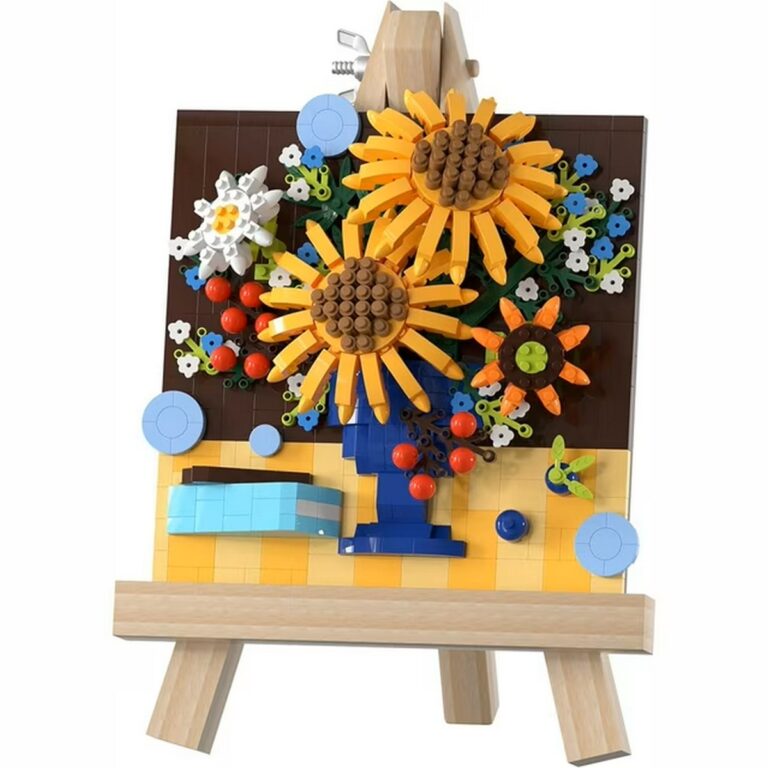 All'interno della confezione troverai tutto il necessario per creare il tuo "dipinto": una base che simula una tela su un cavalletto in legno, e una vasta gamma di piccoli mattoncini colorati che andranno a comporre i petali, le foglie e il vaso del tuo bouquet.