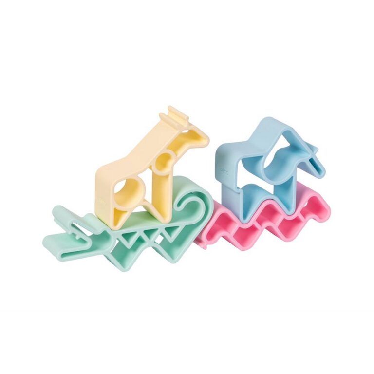 Giraffa, Elefante, Coccodrillo e Serpente ci introducono nel meraviglioso regno animale e ci offrono infinite possibilità di gioco, da un massaggiagengive a un elemento da costruzione o uno stampo da forno.