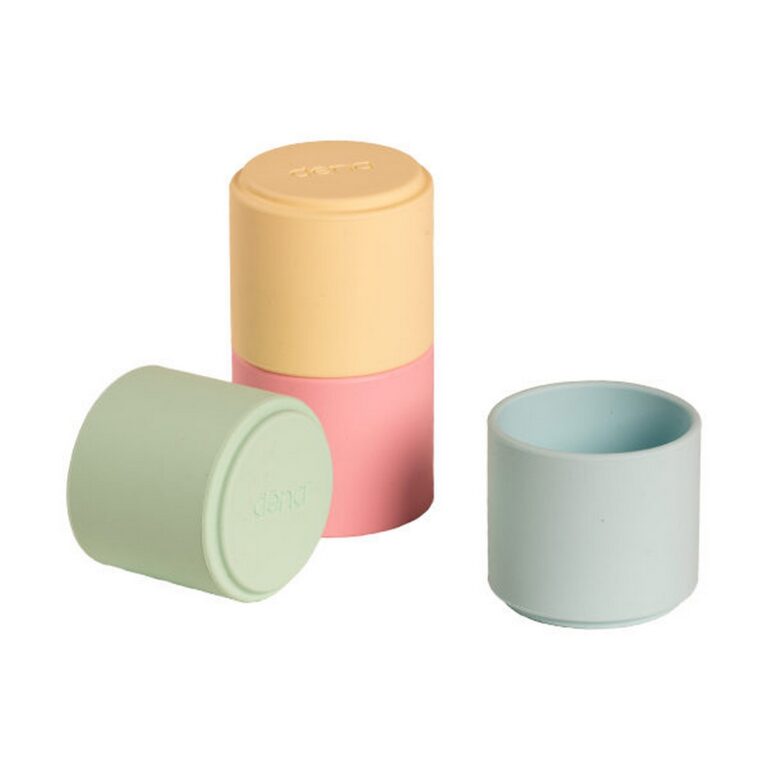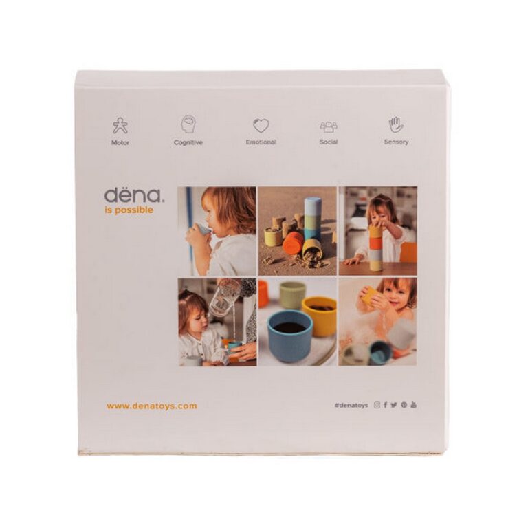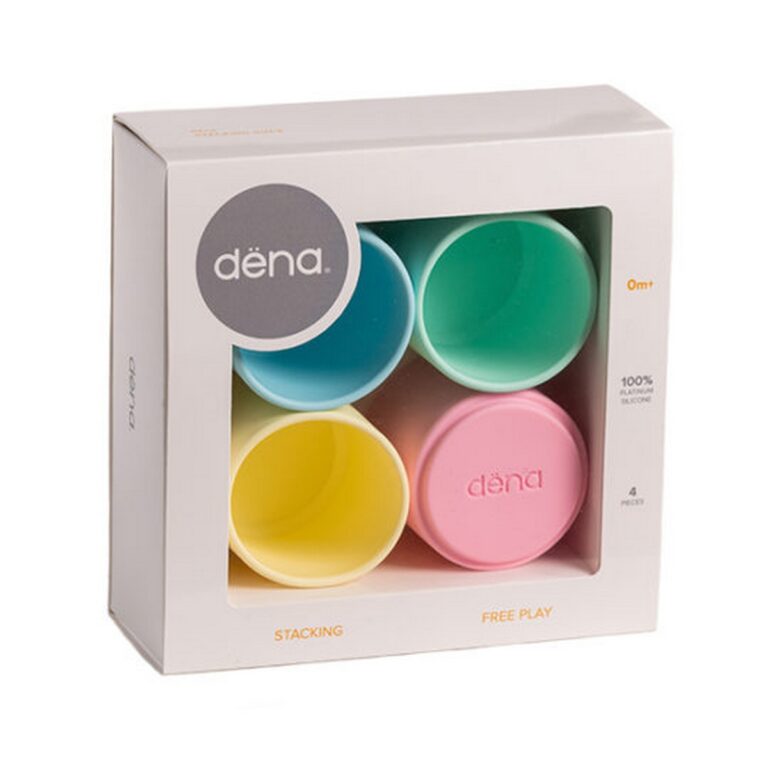 Classiche tazze impilabili con un tocco Dena! Il nostro design in silicone morbido ma di alta qualità consente un uso versatile che sviluppa capacità motorie, cognitive e sensoriali.