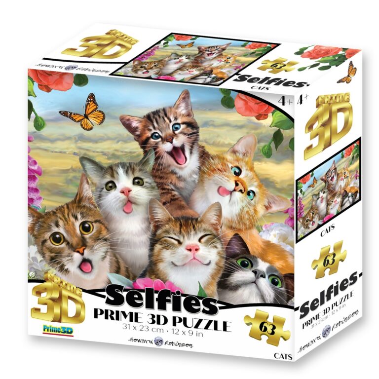 H. Robinson - Cat Selfie. Bellissimo puzzle 3D lenticolare con effetto di profondità e movimento dell' immagine. Prime 3D trasforma immagini unidimensionali in immagini 3D lenticolari straordinarie e coinvolgenti che danno vita ai tuoi puzzle. 63 pz. Dimensioni : 31 x 23 cm - Età consigliata: 4+