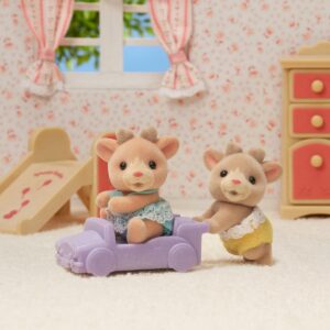 Gemelli Renna. Set composto da tre pezzi: bebè che gattona, bebè seduto e un giocattolo da cavalcare. Età: 3+