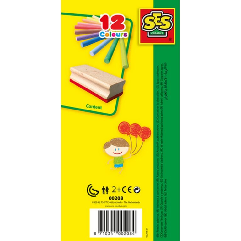 Con questi gessi SES puoi fare bellissimi disegni con tutti i colori dell'arcobaleno. Questi gessi per lavagna producono meno polvere rispetto ai gessi normali. La tua opera non ti soddisfa del tutto? Basta pulire la lavagna con l'apposito cancellino e ricominciare. Pratici per la scuola e a casa. Età Consigliata: 2+
