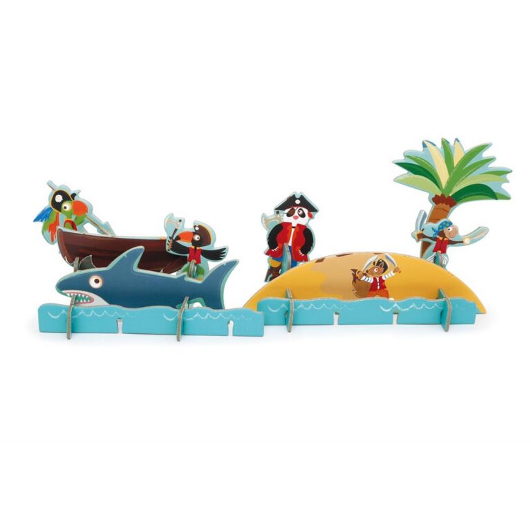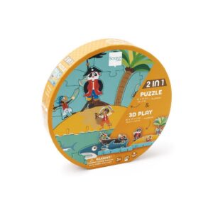 Puzzle 2 in 1 Pirati – 36pz – Metti insieme tutti i pezzi per creare un’immagine divertente e colorata. Oppure assembla alcuni pezzi per formare una divertente immagine 3D con cui poter giocare e inventare fantastiche storie! Il puzzle ha una forma classica e arriva in una bella scatola di cartone resistente. Perfetto per i bambini che preferiscono una sfida diversa ai puzzle tradizionali.