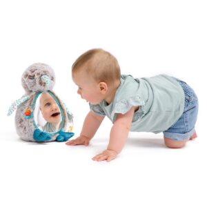 Questo adorabile peluche non è solo morbidissimo da abbracciare, ma offre anche 5 coinvolgenti attività sensoriali: tessuti diversi da esplorare, suoni delicati da ascoltare e uno specchio sicuro per incoraggiare la scoperta di sé.