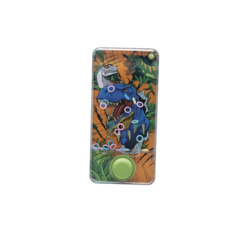 My Phone Water Game / Gioco d' Acqua -Dinosauro. I giochi d’acqua Wild Republic Water Games sono perfetti per acquisire pazienza e coordinazione occhi mani. Non richiede l’uso di batterie. Premi il bottone per muovere gli anelli in acqua e far sì che finiscano negli appositi supporti. Questo giocattolo è un regalo di compleanno magnifico, ideale da portare anche in viaggio. Dimensioni del gioco L 6,5 x H 13,5 cm, perfetto per le mani dei bambini. Età: 3+