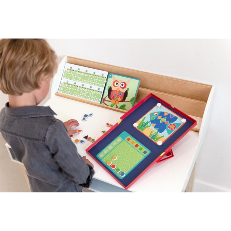 Edulogic Gioco magnetico - Riesci a vedere quali forme in determinati colori puoi trovare sulla scheda attività? Scopri le stelle, i triangoli, i quadrati, i diamanti e i cerchi nei disegni. Segna sempre il colore corretto della forma. Ci sono 20 carte compito da scoprire. Shapes & Colours è un gioco magnetico sorprendentemente divertente per imparare forme e colori. Stimola abilità come la percezione visiva, la concentrazione, la consapevolezza spaziale e il pensiero logico. Età: 5+