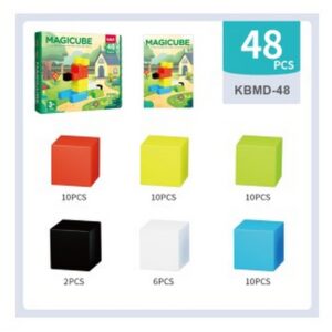 • 48 Pezzi per Costruzioni Cubiche: Il set include 48 blocchi magnetici a forma di cubo in una varietà di colori vivaci (rosso, giallo, verde, nero, bianco, blu). I magneti interni permettono di collegare i cubi su ogni lato, offrendo una libertà di costruzione verticale e orizzontale senza precedenti.