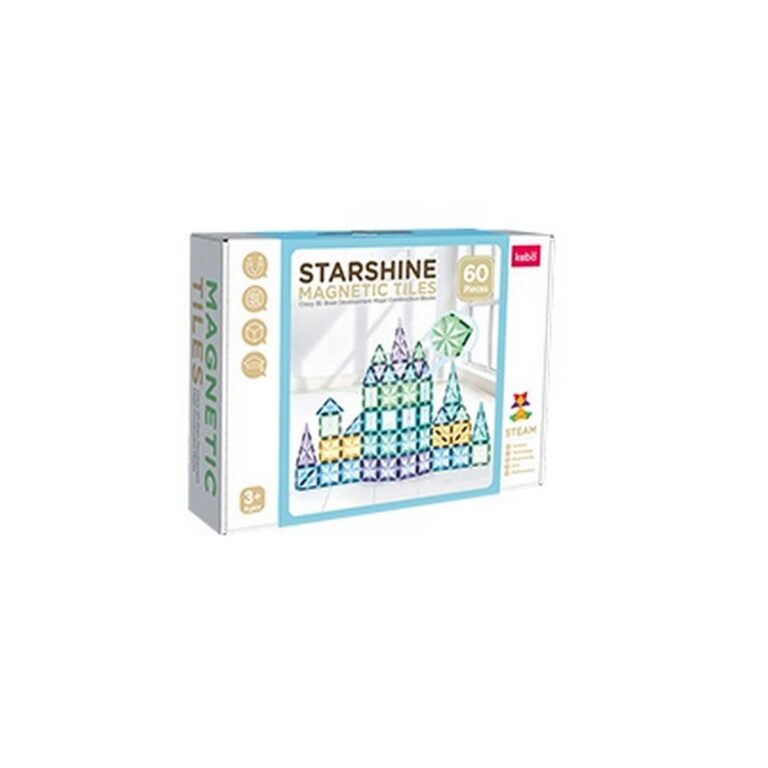 Illumina il gioco e la creatività con il set Kebo Starshine Magnetic Tiles "Stelle Brillanti" da 60 pezzi! Questo incantevole set di costruzioni magnetiche si distingue per le sue piastrelle dai colori vivaci e semi-trasparenti, ornate da motivi a stella, che permettono ai bambini di costruire castelli fiabeschi, case scintillanti e forme geometriche con un tocco magico. È lo strumento ideale per stimolare lo sviluppo delle competenze STEAM (Scienza, Tecnologia, Ingegneria, Arte, Matematica).
