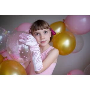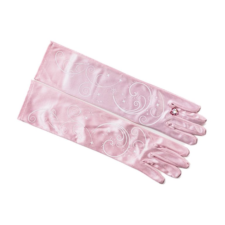 I guanti rifiniti con una gemma a forma di cuore rosa sull'anulare, sono l'accessorio perfetto per una vera principessa!