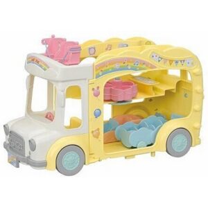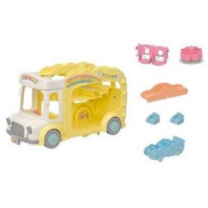 Il Sylvanian Families - Rainbow Fun Nursery Bus è un bus a tre piani pensato per ospitare ben 28 bebè, inclusi i bebè in culla. Questo affascinante autobus si trasforma facilmente in un'area giochi mobile, offrendo tantissimi giochi e attività. I sedili si trasformano in una giostra, un’altalena, un scivolo, un pianoforte e una carrozzina. Ogni bebè, anche quelli più piccoli, può divertirsi a bordo, e le corde dell’altalena possono essere usate come cinture di sicurezza.