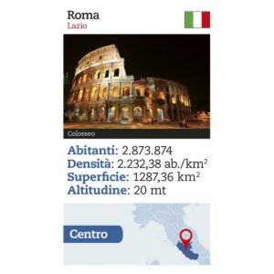 Un gioco di carte tascabile, veloce, immediato, con poche regole che ti permetterà di conoscere le Città Italiane attraverso i monumenti, il numero di abitanti, la superficie e molto altro.