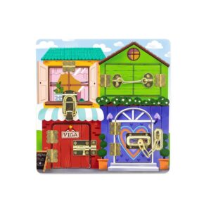 Il gioco "imparo a conoscere le chiusure" di Viga è un giocattolo educativo in legno progettato per aiutare i bambini a sviluppare abilità motorie fini e comprendere il funzionamento di vari tipi di chiusure.