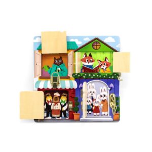 Cosa fanno gli amici animali dietro le finestre o le porte? Giocattolo in legno che offre ai bambini infinite opportunità di apprendimento e divertimento, stimolando la loro immaginazione, creatività e abilità motorie in modo sicuro e coinvolgente.