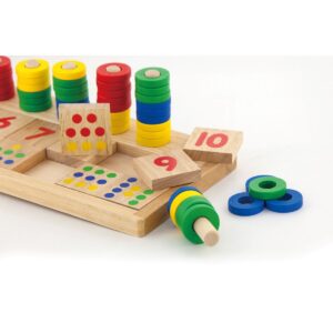 Giocattolo in legno adatto a bambini in età prescolare. Offre un modo interattivo e stimolante per esplorare il mondo dei numeri e della matematica.