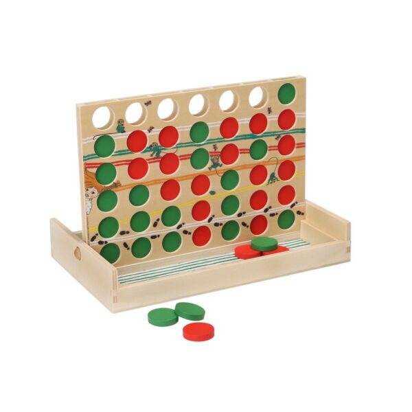 Preparati a una sfida strategica in compagnia di Pippi! Questo gioco in legno in stile "Forza 4" ti invita a mettere alla prova la tua astuzia per mettere in fila quattro pedine del tuo colore prima del tuo avversario.