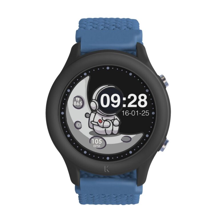 K-WATCH di Kidywolf: Lo smartwatch interattivo per bambini con funzioni utili (sonno, frequenza cardiaca, meteo) ma senza giochi. Con connettività Bluetooth, cinturino elastico regolabile e batteria a lunga durata, è lo strumento ideale per la vita di tutti i giorni.