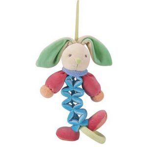 Per cullare o intrattenere il bambino al suono di ” Unchained melody “. Il coniglio in velluto di cotone si allunga da 19 a 28 cm. Presentato in una bella scatola cilindrica, di 12,5 cm di diametro, riutilizzabile a piacere. Età: 0+