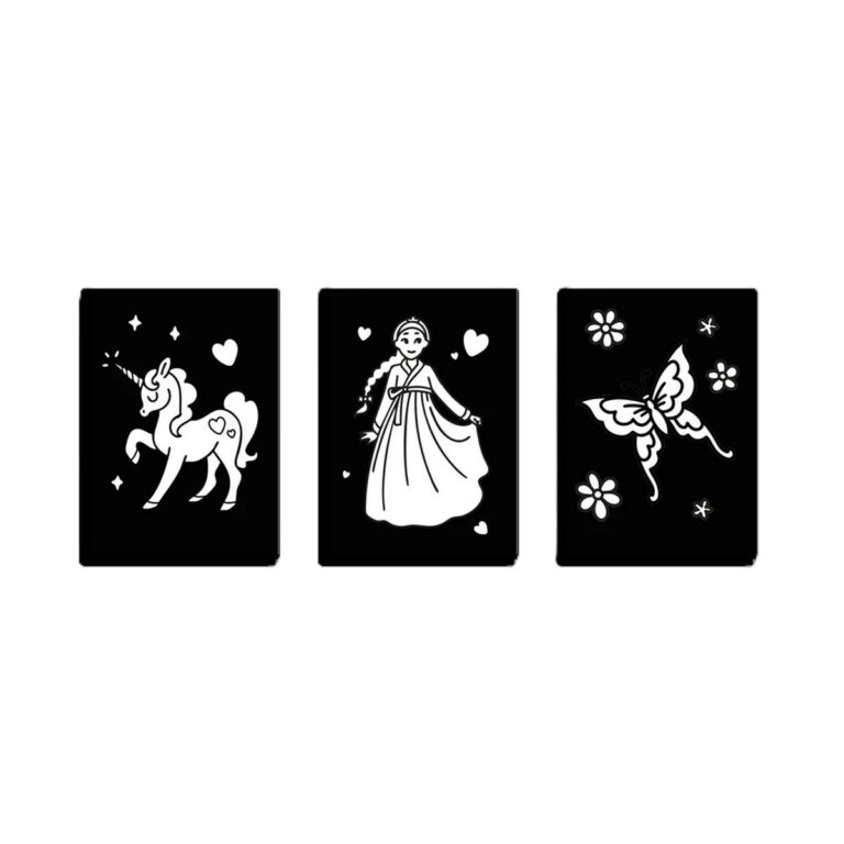 Non servono colla né forbici, quindi l’attività è sicura e adatta anche ai più piccoli. La scatola si trasforma in una cornice luminosa che valorizza ogni disegno completato, rendendolo un vero elemento decorativo.