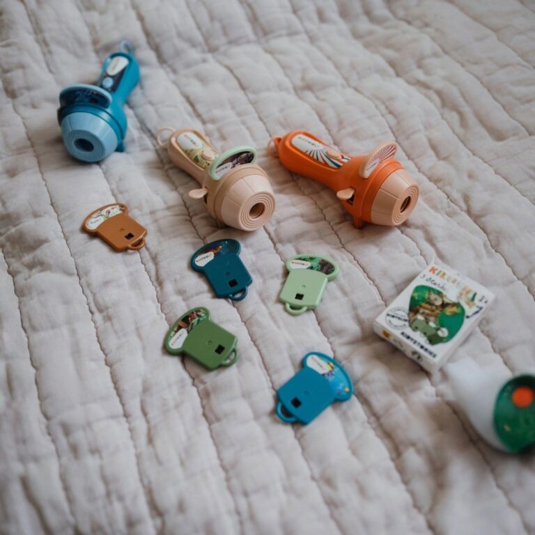 KIDYSTORIES di Kidywolf: Set di 3 dischetti per il proiettore KIDYSLIDE, con 8 immagini ciascuno. Espandi le storie della buonanotte con temi come: Avventura, Giungla, Storia e La Fontaine, stimolando la fantasia e l’apprendimento dei bambini.