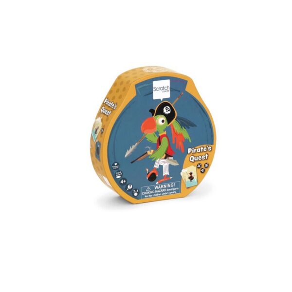Con il gioco Pirate's Quest di Scratch hai 4 giochi in uno. Con le 37 carte da gioco e 10 gettoni puoi giocare, a Little War, Jolly Roger, Memory e Tris. Età: 4+