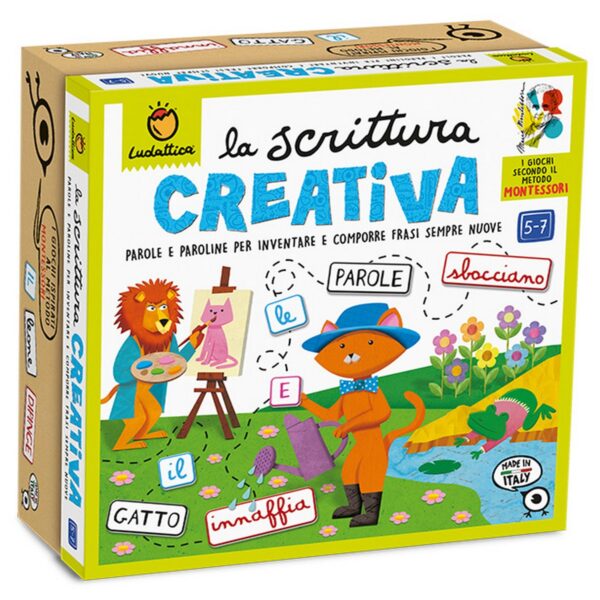 All’interno della confezione ci sono tante schede illustrate a cui ispirarsi per comporre frasi originali con le tesserine in dotazione, dando il via alla fantasia e all’immaginazione!
