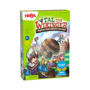 Nella Valle dei Vichinghi si svolge l'annuale bowling nei barili: coraggio, abilità e rischio per far cadere la palla nei barili giusti e guadagnare più monete d'oro. Il gioco di tattica e abilità HABA La valle dei Vichinghi, con tabellone XXL, navi 3D e monete d'oro, crea un'atmosfera avvincente. Chi cade in acqua perde tutto, ma chi posiziona bene i vichinghi con il bowling e raccoglie più oro vince.