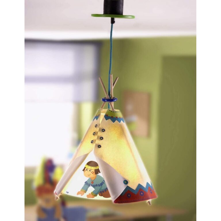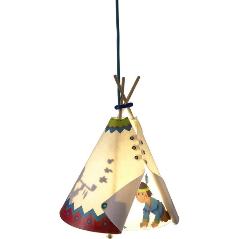 Originale lampada da soffitto – Piccolo Capo Indiano di HABA. La lampada crea un’atmosfera accogliente nella cameretta dei bambini.