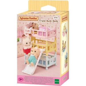 Il Sylvanian Families - Triple Bunk Beds è il set ideale per aggiungere un tocco di divertimento alla stanza dei bebè Sylvanian. Questo set include tre letti a castello colorati, uno rosa, uno giallo e uno blu, che possono essere impilati uno sopra l'altro, disposti affiancati o posizionati in altre combinazioni creative.