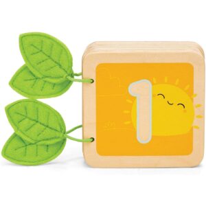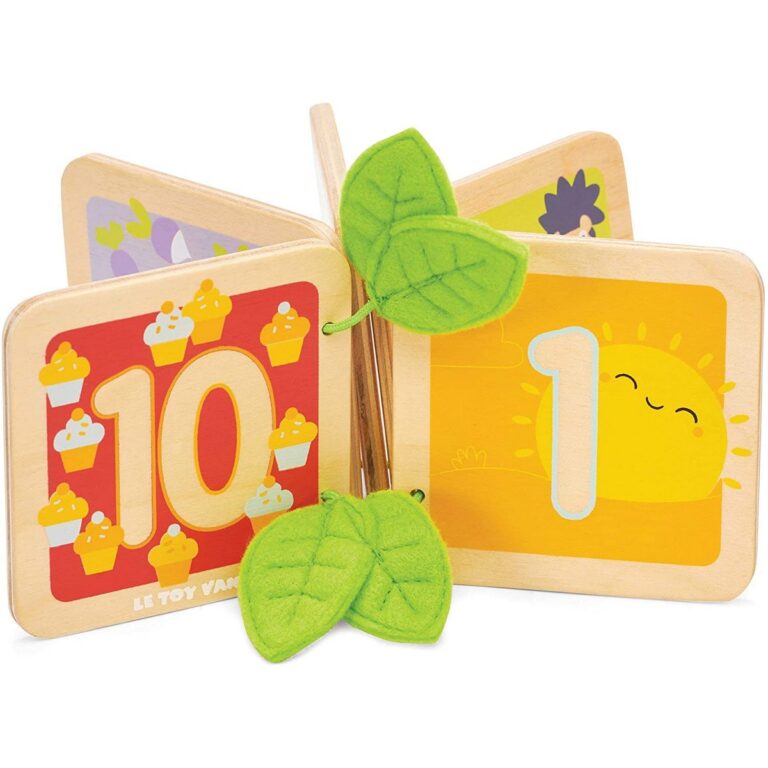 Un piccolo libro per bambini in legno con illustrazioni uniche per contare da 1 a 10. Ogni pagina ha un tema diverso, dalle api, ai pulcini, a colorati dolcetti. Il libro è utile per incoraggiare il riconoscimento dei numeri, dei colori e lo sviluppo della lingua, promuovendo l'apprendimento attraverso il gioco. Età: 1+