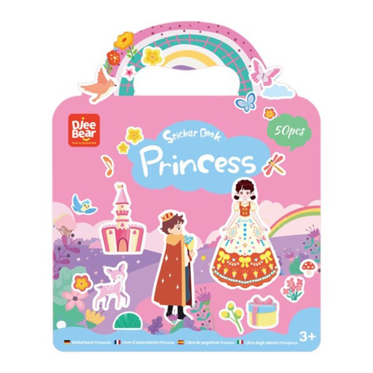 Scopri il divertimento educativo con i Djee Bear Sticker Book, libri creativi con 50 adesivi in gel riutilizzabili pensati per bambini dai 3 anni in su. Ogni libro è dedicato a un tema specifico — Veicoli, Oceano, Animali, Principesse o Dinosauri — e include uno sfondo illustrato su cui i piccoli possono applicare e riposizionare liberamente gli adesivi.