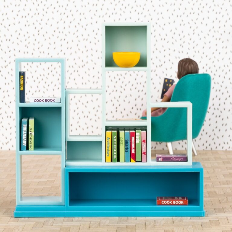 Questo set Lundby comprende una libreria, un portafrutta e dieci libri. La libreria è composta da tre diverse sezioni, con scomparti profondi per esporre magnificamente i libri.