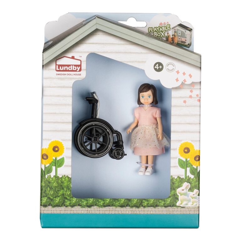 La sedia a rotelle è carina, può passare attraverso le porte di Lundby e la parte del sedile è in tessuto morbido.