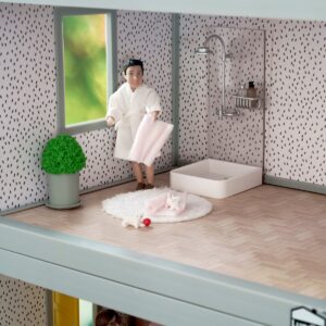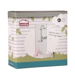 È ora di una bella doccia calda! Con questo set la famiglia Lundby potrà fare delle belle docce nell'elegante cabina doccia con soffione. Dimensioni: 60X60X130 mm Scala 1:18