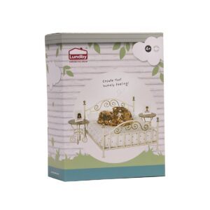 Un set davvero bellissimo per la camera da letto della famiglia Lundby. Sono inclusi anche due portafoto, lenzuola e cuscini. Con il lussuoso letto in ottone, le tue bambole potranno dormire sonni tranquilli tutta la notte!