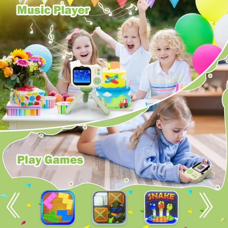 - Autonomia e Memoria: La batteria da 1000 mAh garantisce ore di divertimento ininterrotto, mentre la scheda da 32 GB inclusa offre ampio spazio per memorizzare migliaia di foto e video.
