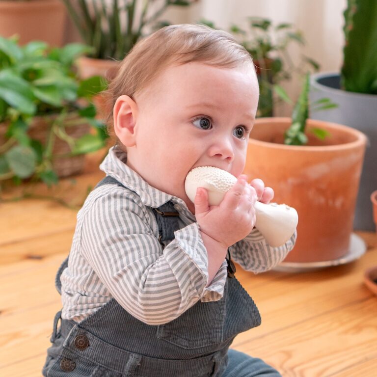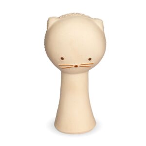 Misi è un bellissimo massaggiagengive con sonaglino a forma di gatto. È un giocattolo leggero e facile da impugnare. Il suo spessore e la sua forma favoriscono la presa. Include creste per la stimolazione orale e il sollievo delle gengive prima e durante la dentizione. Contiene anche una piccola campana per favorire l'udito.
