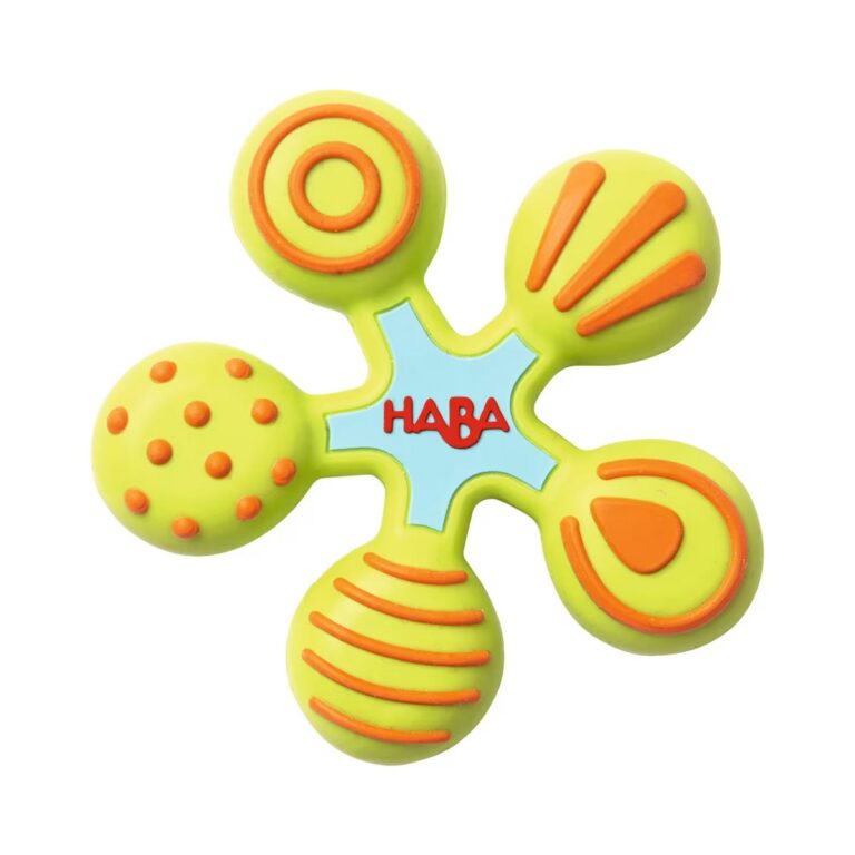 I bambini esplorano il mondo con tutti i sensi, e la bocca è uno dei loro strumenti principali, soprattutto nei primi mesi di vita. Il Massagengive - Stella di HABA accompagna i piccoli in un divertente viaggio di scoperta grazie alle sue cinque punte, ciascuna con una superficie diversa: puntini, strisce sottili o larghe, vortici e altre texture da esplorare con la bocca e le mani.