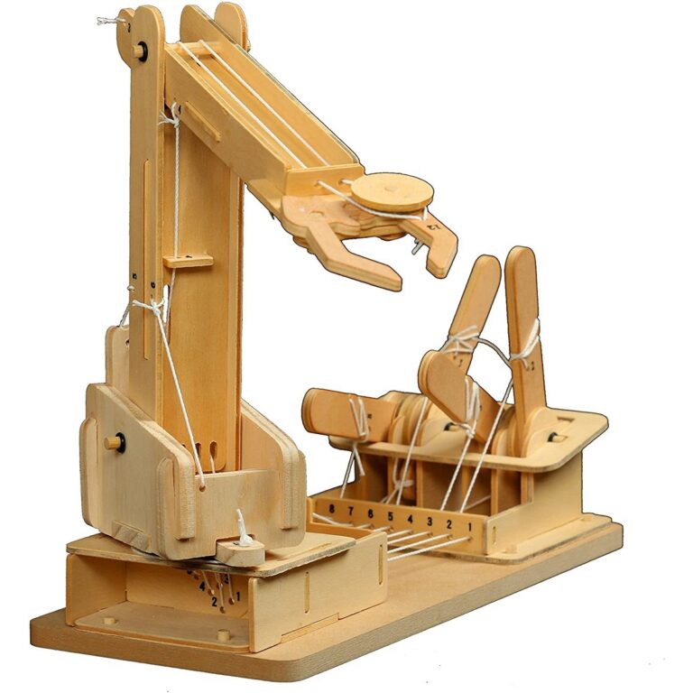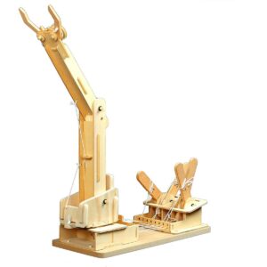 Un bellissimo modello di gru funzionante attraverso delle leve. Permette di afferrare oggetti e spostarli. Realizzata in legno, facile da montare con parti pre-tagliate. Contiene colla per l'assemblaggio. 60 x 45 cm circa