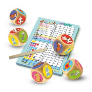 Mega Yatzy Jr. - Gioca a dadi con questo famoso gioco per tutta la famiglia. Con Mega Yatzy Jr. potrete giocare insieme tutta la sera! Grazie ai dadi in legno extra large e ai divertenti animali, il gioco è facile da capire. Il blocchetto dei punteggi contiene pagine sufficienti per molti turni di gioco ed è dotato di un facile sistema di punteggio. Divertimento assicurato per tutta la famiglia! Età: 4+
