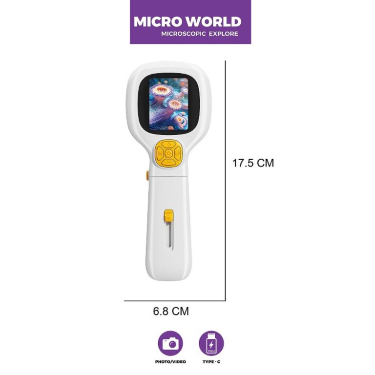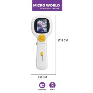 Porta la scienza sempre con te con questo microscopio digitale portatile adatto ai bambini dai 6 anni in su! Facile da usare, leggero e maneggevole, è perfetto per esplorazioni in casa, a scuola o all’aperto.