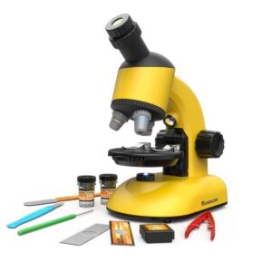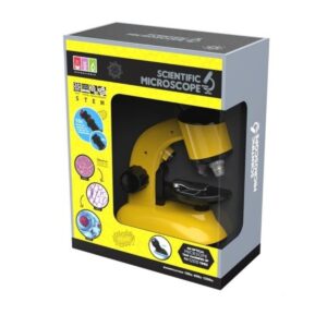 Offre tre livelli di ingrandimento (100x, 400x, 1200x), perfetti per esaminare campioni biologici, insetti, piante e molto altro. Il design ergonomico, unito a una struttura robusta in plastica resistente, lo rende adatto per un uso domestico o scolastico. Include oculare, luce integrata alimentata da 2 batterie AA (non incluse), tavolino con fermagli, e una selezione completa di accessori scientifici come vetrini, pipetta, pinzette, bisturi in plastica e contenitori con campioni simulati.