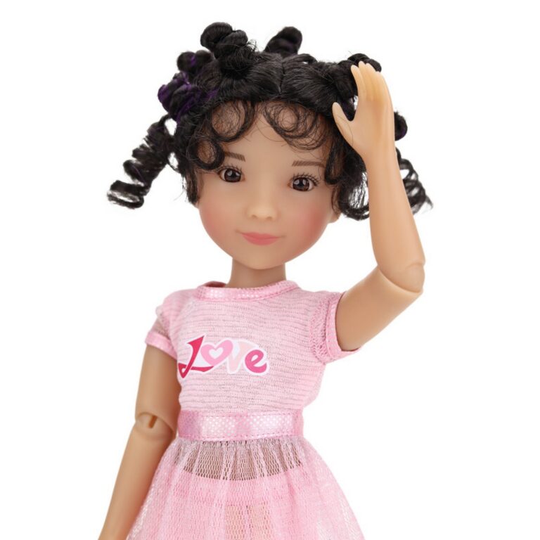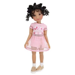 Bambola Minnie - Ruby Red Siblies. Minnie è gentile con tutti quelli che incontra. A Minnie piace affrontare le sfide, soprattutto quando si tratta di ballare! Il suo stile di danza preferito è il balletto, ma quando non si esercita nelle sue piroette le piace provare i balli di tutto il mondo, dalla salsa allo swing! Indossa un vestito rosa con la scritta "love", una minigonna rosa, calze bianche e scarpe da ginnastica luccicanti dorate. Queste bellissime bambole in vinile, alte circa 30,5 cm e con 9 punti di articolazione, sono sorelle, fratelli e amiche!! Amano la musica, la danza, lo sport, l'amicizia e il divertimento. Età: 3+