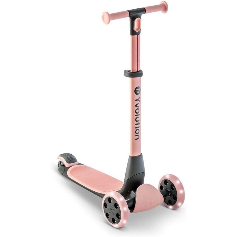 Caratteristiche Monopattino : pieghevole, manubrio regolabile in altezza, design arrotondato senza viti e bulloni a vista, ruote anteriori a led, appendibile a parete con accessorio per agganciarlo incluso, freno largo su ruota posteriore, base extra larga.