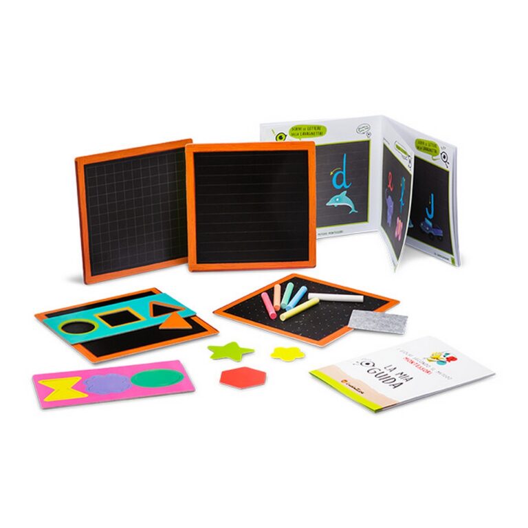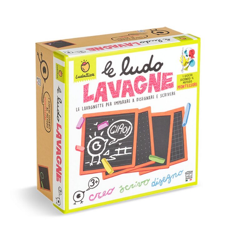 Ludattica - Montessori - Le Ludo lavagne. Un gioco progettato per i più piccoli. Attraverso le attività di disegno e scrittura con i gessetti, i bambini sviluppano la motricità fine e stimolano la fantasia e la creatività. CONTENUTO: 4 lavagnette, 6 gessetti colorati con cancellino, stencil, quaderno operativo, guida didattica. Età: 3-6 anni