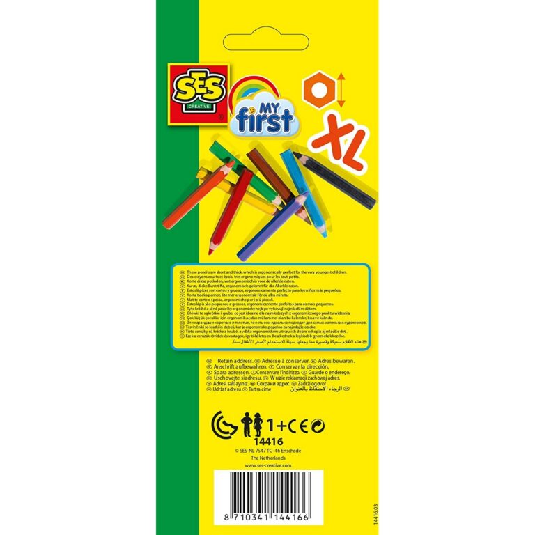 My First è una linea di prodotti appositamente concepita per le menti creative dei più piccoli. I prodotti di questa linea sono ergonomici, estremamente sicuri, ipoallergenici e senza glutine. 8 mini matite colorate spesse in colori vivaci. Con queste matite disegnare e colorare è semplice. La forma ergonomica rende queste matite colorate adatte per bambini a partire dai 12 mesi.