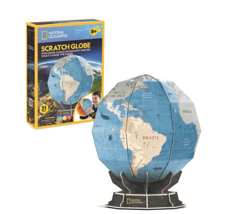Puzzle 3D Animal National Geographic – Mappamondo. Questo modello si compone di 21 pezzi. Dimensioni: 20,5 x 20,5 x 24,2 cm