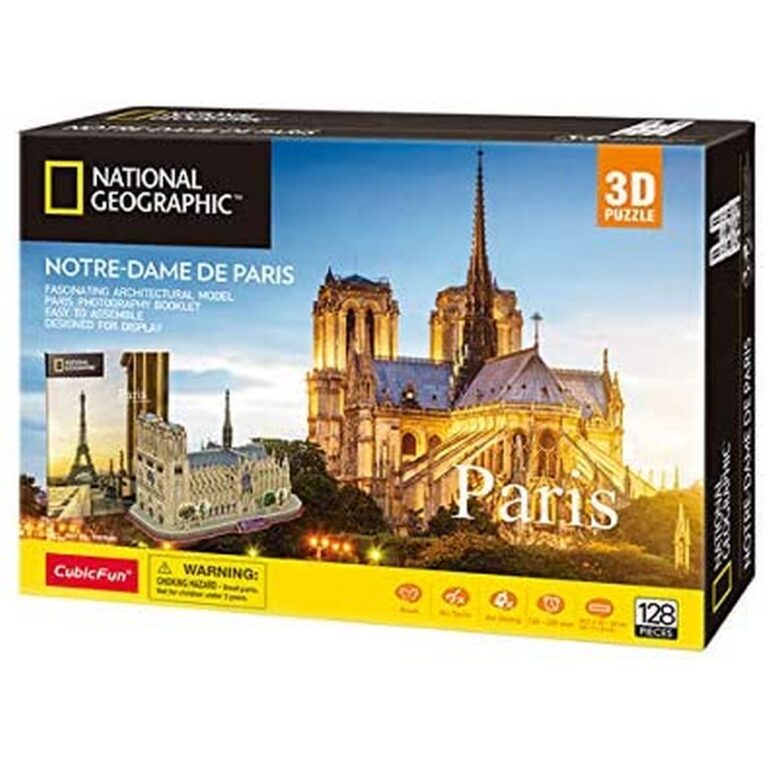 Puzzle 3D divertente e stimolante per replicare la famosissima cattedrale di Notre Dame a Parigi. Facilissimo da assemblare, senza bisogno di forbici, colla o nastro adesivo. Questo modello si compone di 128 pezzi, complessità 5/10, dimensioni finali 35,5 x 18 x 24 cm Include libro informativo su Parigi in lingua inglese