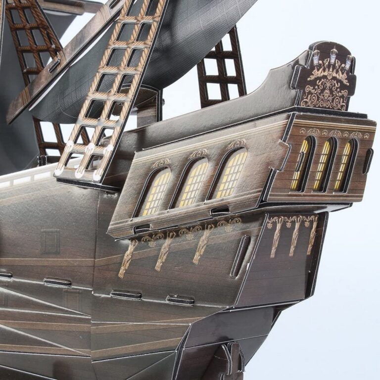Puzzle 3D divertente e stimolante per replicare la Queen Anne’s Revenge. Facilissimo da assemblare, senza bisogno di forbici, colla o nastro adesivo. Numero di pezzi: 155 – Difficoltà 5 su 10 – Dimensione modello finito 48 x 15 x43 cm