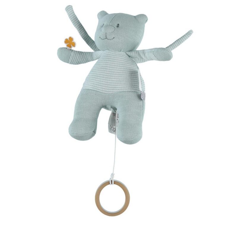 Il mini peluche musicale Nouky di Noukie's è realizzato in cotono biologico, culla il bambino al suono della sua melodia dolce e confortante, lo calma e lo aiuta ad addormentarsi. Dimensione: 23 cm